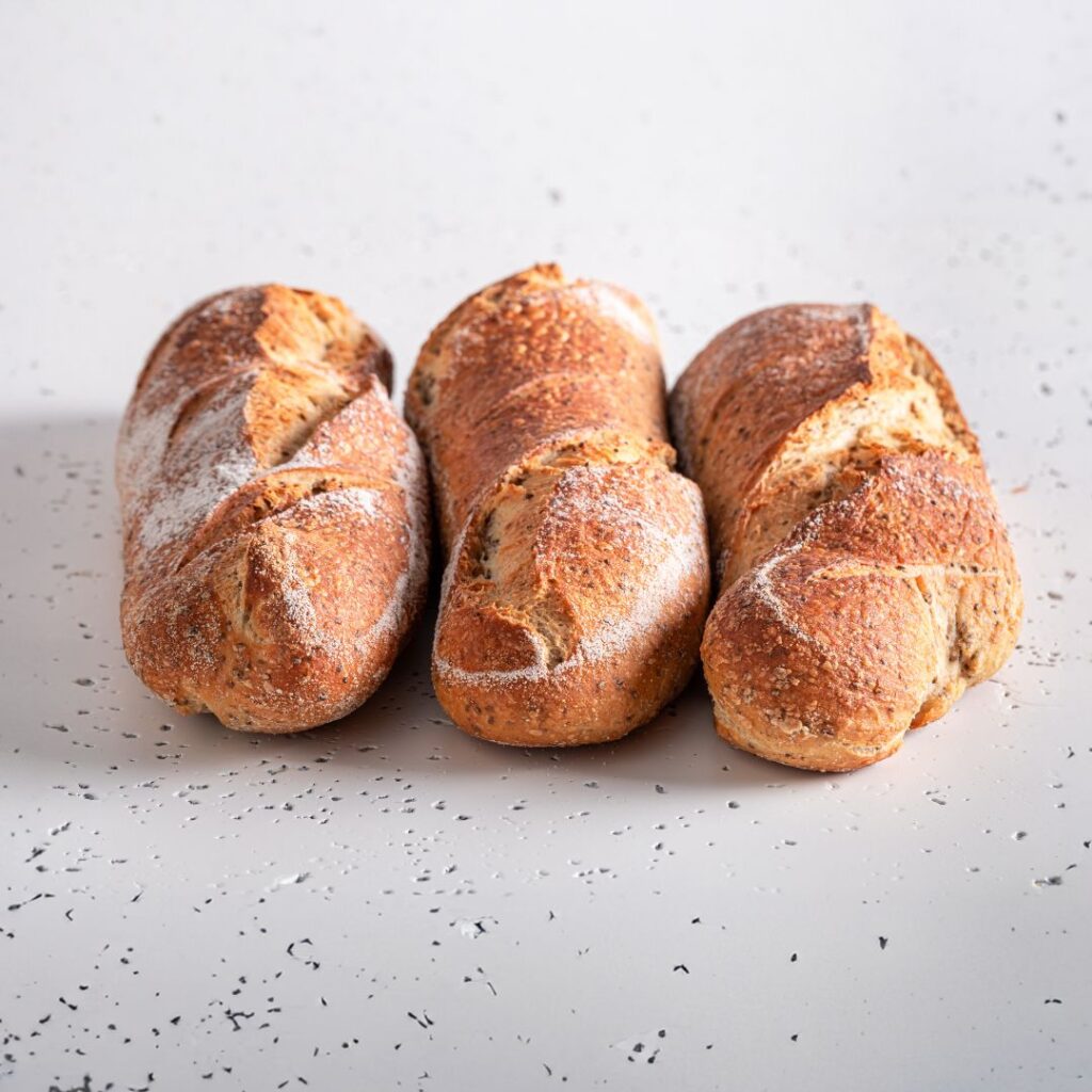 Bagietka pszenna z dodatkiem mąki gryczanej i nasion chia.