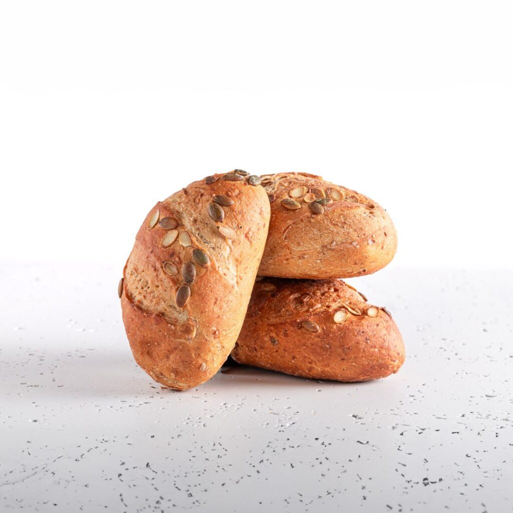 Bułka pszenna z dodatkiem pestek dyni i ziaren łamanego żyta oraz słodu jęczmiennego i pszennego. Bogata w składniki mineralne, błonnik i witaminy, posypana chrupiącymi nasionami dyni.
