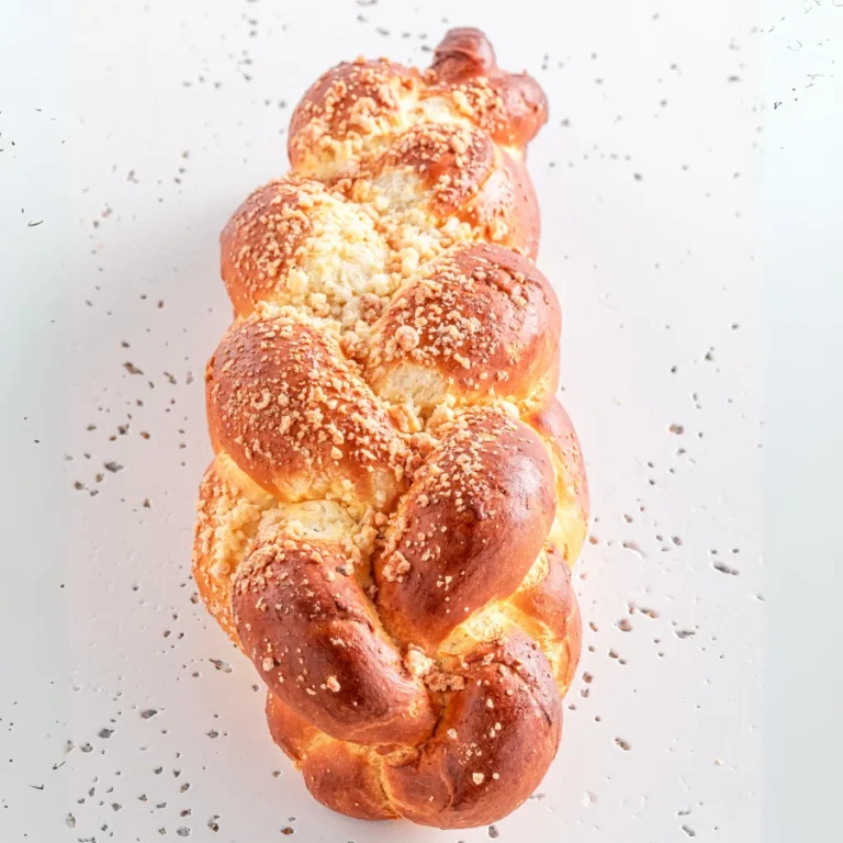 Delikatne ciasto drożdżowe, ręcznie splatane, posypane kruszonką.
