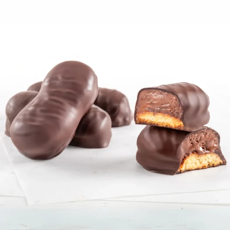 Ciastko o smaku marcepanowym z kremem czekoladowym, z dodatkiem alkoholu, oblane belgijską czekoladą.