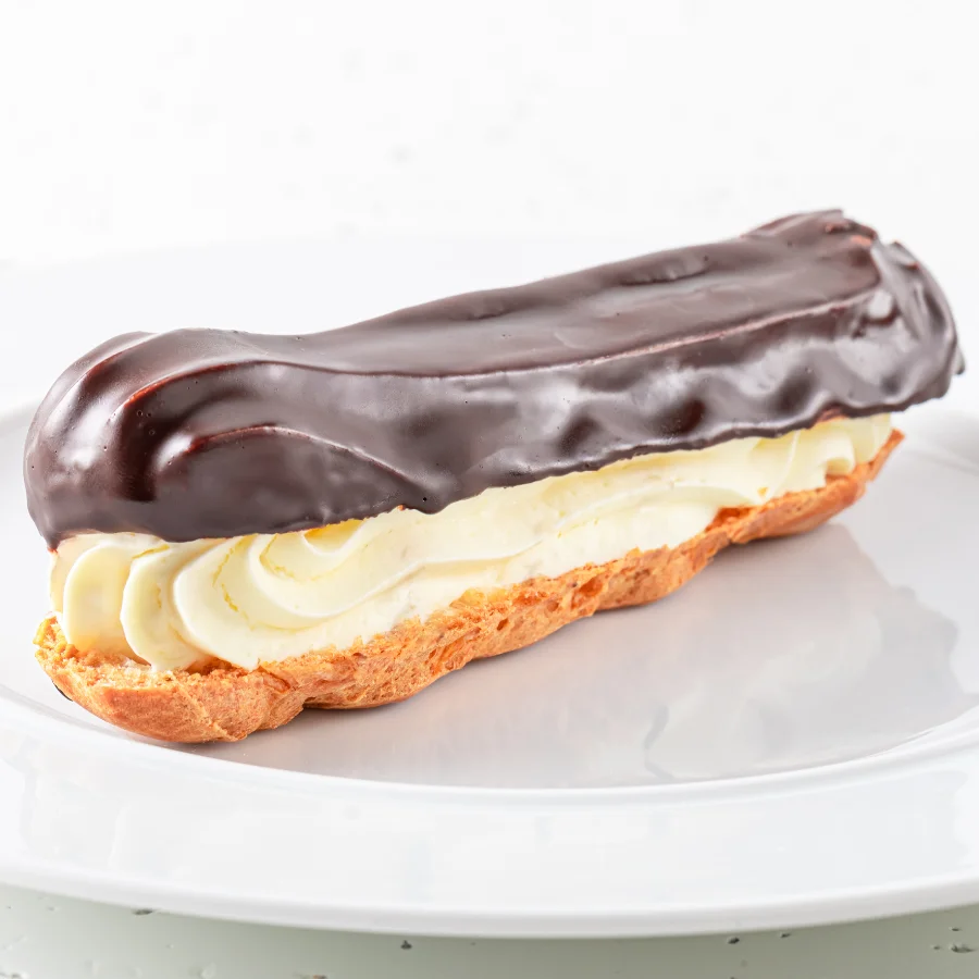 Ciasto parzone wypełnione kremem budyniowym z polewą czekoladową.