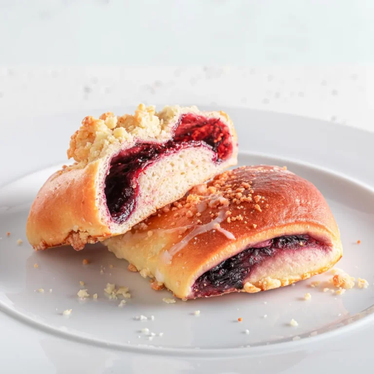 Ciastko drożdżowe z jagodami, posypane kruszonką i oblane lukrem. Produkt sezonowy