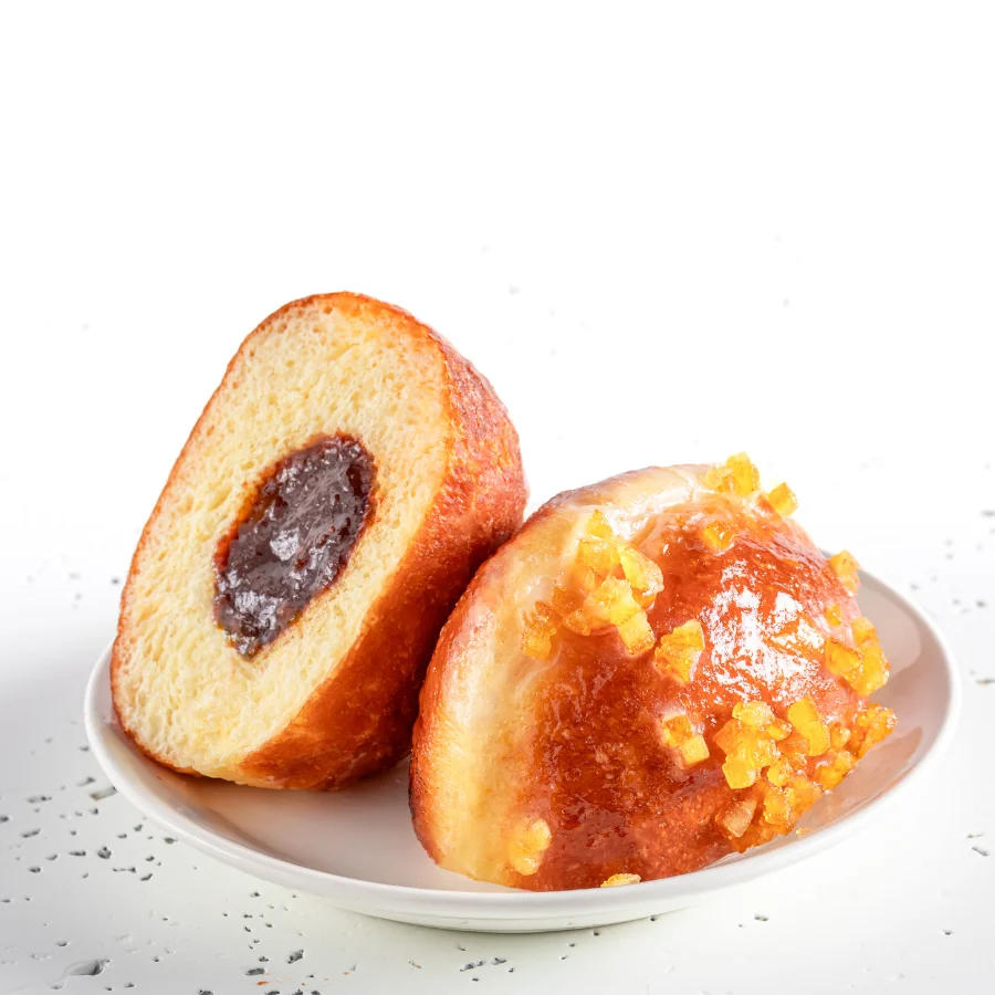 Ciasto drożdżowe z powidłami śliwkowymi oblane lukrem i posypane skórką pomarańczową.